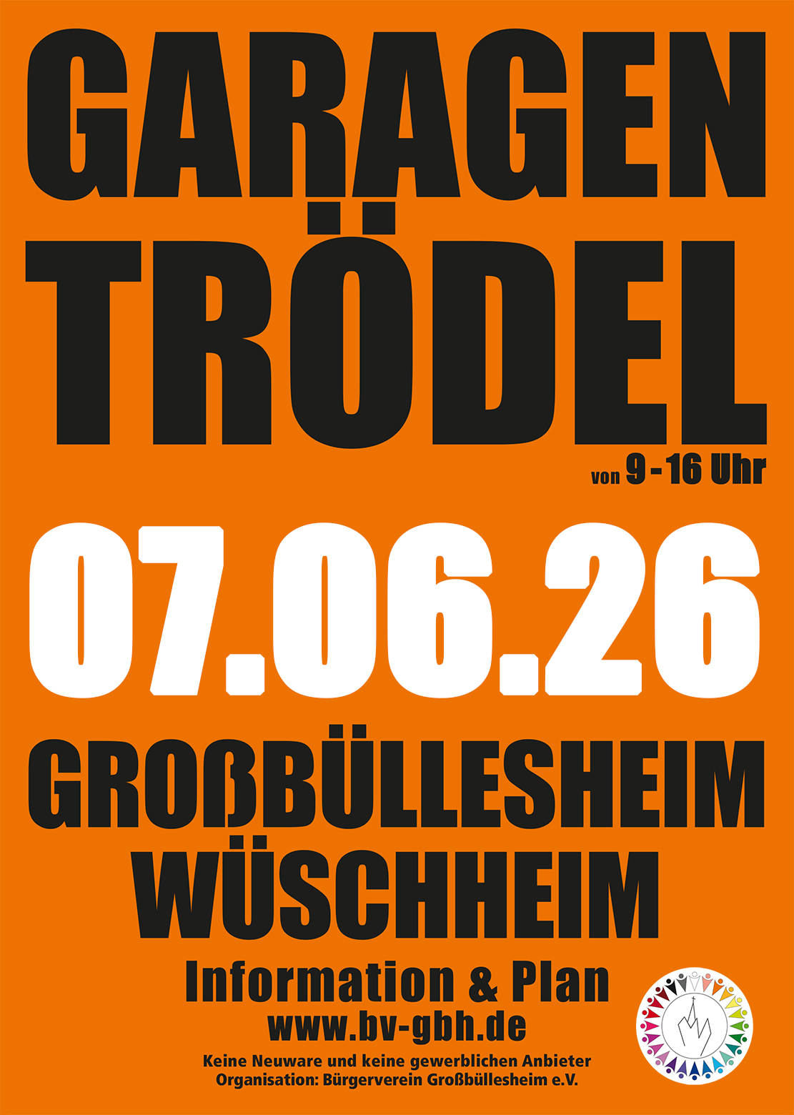 traditionell trödeln wir wieder am Sonntag nach Fronleichnam. Sollte Ihnen keine Garage/Carport zur Verfügung stehen oder sie wohnen dezentral, bitte versuchen, in zentraler Lage unter zu kommen.