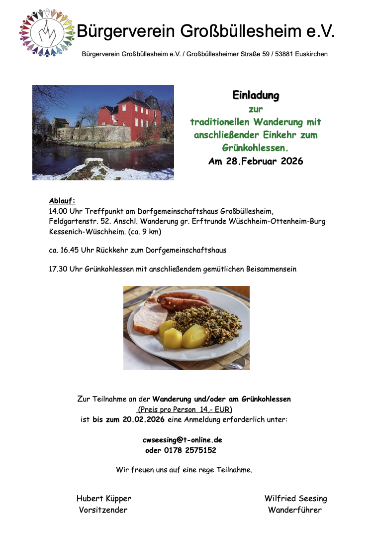 Einladung zur traditionellen Wanderung mit anschließender Einkehr zum Grünkohlessen.