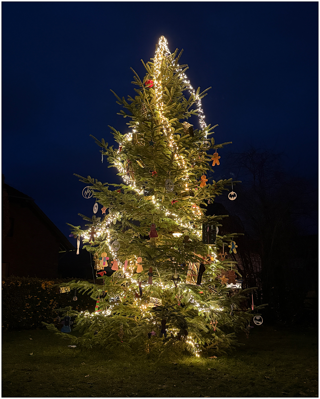 In diesem Jahr hat der Kindergarten Großbüllesheim wunderbaren Baumschmuck gebastelt, der unseren Weihnachtsbaum nun festlich ziert.