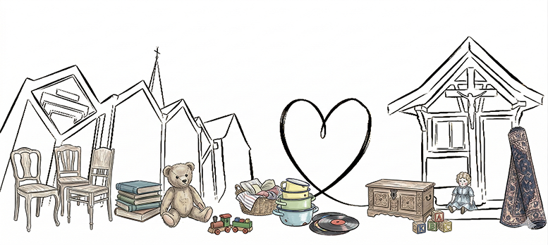 Der Trödelplan wird zeitgerecht auf unserer Homepage, in den Social Media und an zentralen Stellen in den Dörfern eingestellt/angebracht. Jeder Teilnehmer erhält kurz vor der Veranstaltung mehrere Luftballons (weiß/rot), die Sie am Veranstaltungstag an Ihrer Garage/Ihrem Haus anbringen können.
